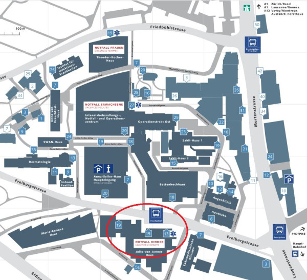 Rollstuhl-Service: Sie finden die Rollstühle im Insel-Parking und an verschiedenen weiteren Standorten im Spital und dürfen diese bis zum Ende Ihres Besuches ausleihen. Im Situationsplan finden Sie rollstuhlgängige Parkplätze auf unserem Areal eingezeichnet.
